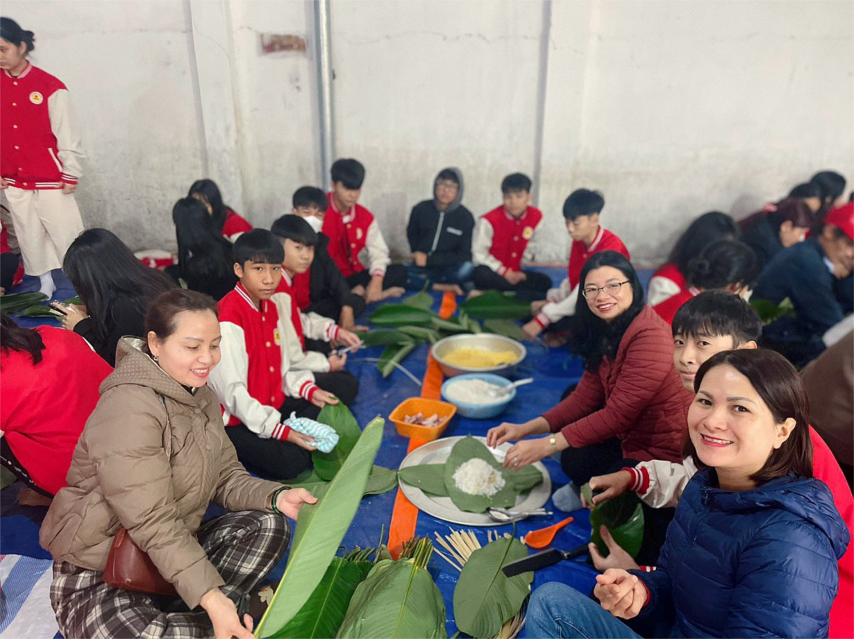 Hòa chung trong không khí rộn rã của ngày tết Nguyên Đán đang đến gần, cô và trò lớp 11X1 và 10X1 trường THPT An Dương Vương đã phối hợp cùng với các bậc phụ huynh tổ chức hoạt động trải nghiệm "Gói bánh chưng ngày tết”. Cô trò và các bậc phụ huynh cùng tất bật cho công tác chuẩn bị: những chiếc lá dong được rửa sạch sẽ, lau khô, khuôn gói bánh, những nguyên liệu cần thiết gồm: Gạo nếp, lá dong, đỗ xanh và thịt lợn đã sẵn sàng trong sự hứng khởi của các em.