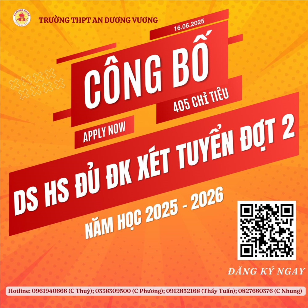 ✨ Nhà trường chân thành cảm ơn quý phụ huynh và các em học sinh đã tin tưởng lựa chọn Trường THPT An Dương Vương là nơi đồng hành trong chặng đường học tập bậc Trung học phổ thông.