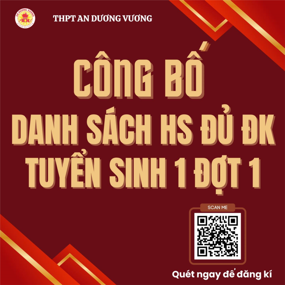 Trường THPT An Dương Vương thông báo đã hoàn tất việc tuyển sinh đợt 1 và công bố danh sách học sinh đủ điều kiện xét tuyển. Các bậc phụ huynh và học sinh có thể tra cứu danh sách dưới đây.